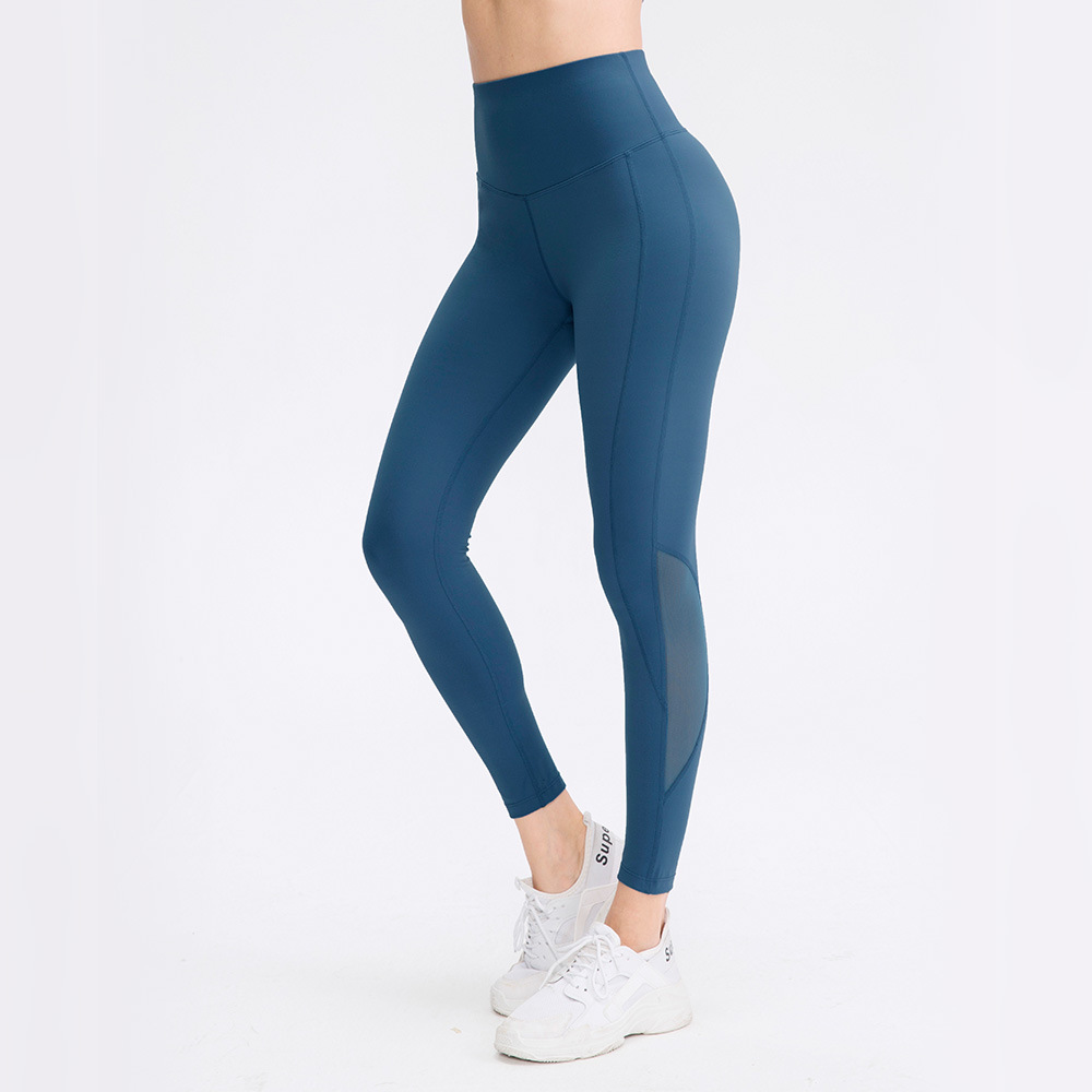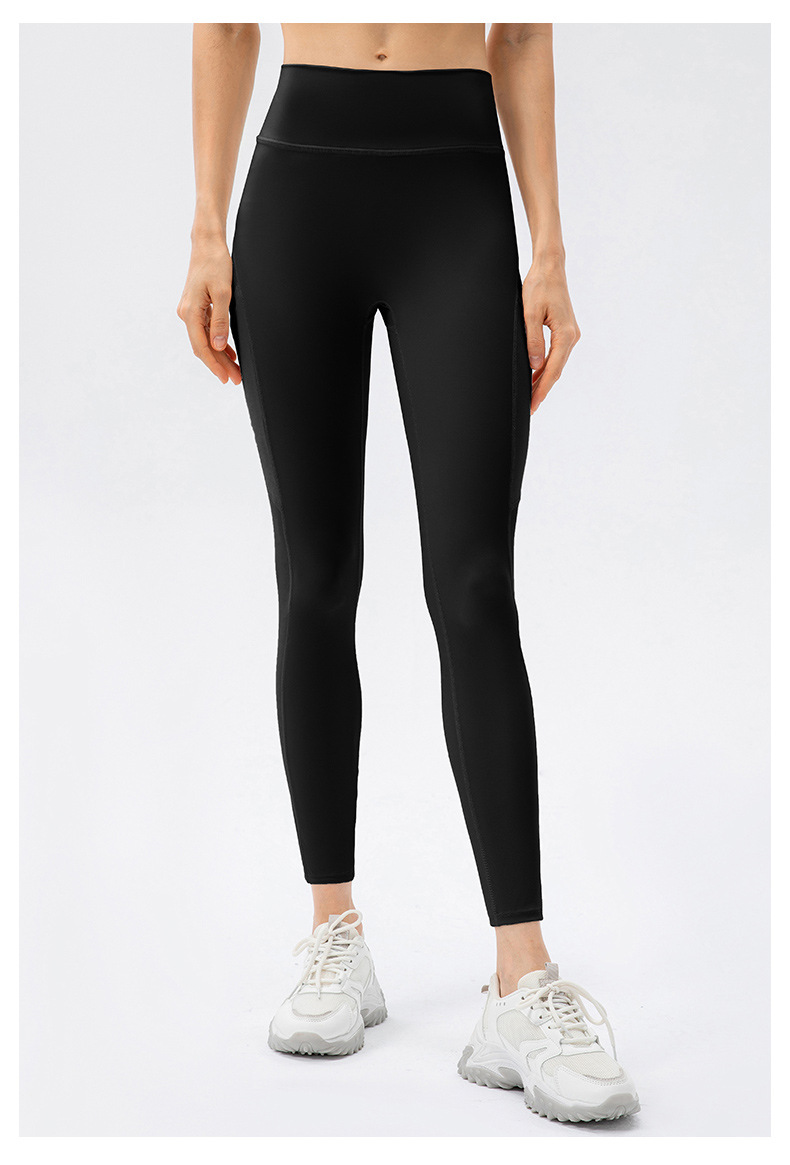 New double-sided brushed yoga pants for women, nude high-waist tight fitness pants, mesh breathable sports pants