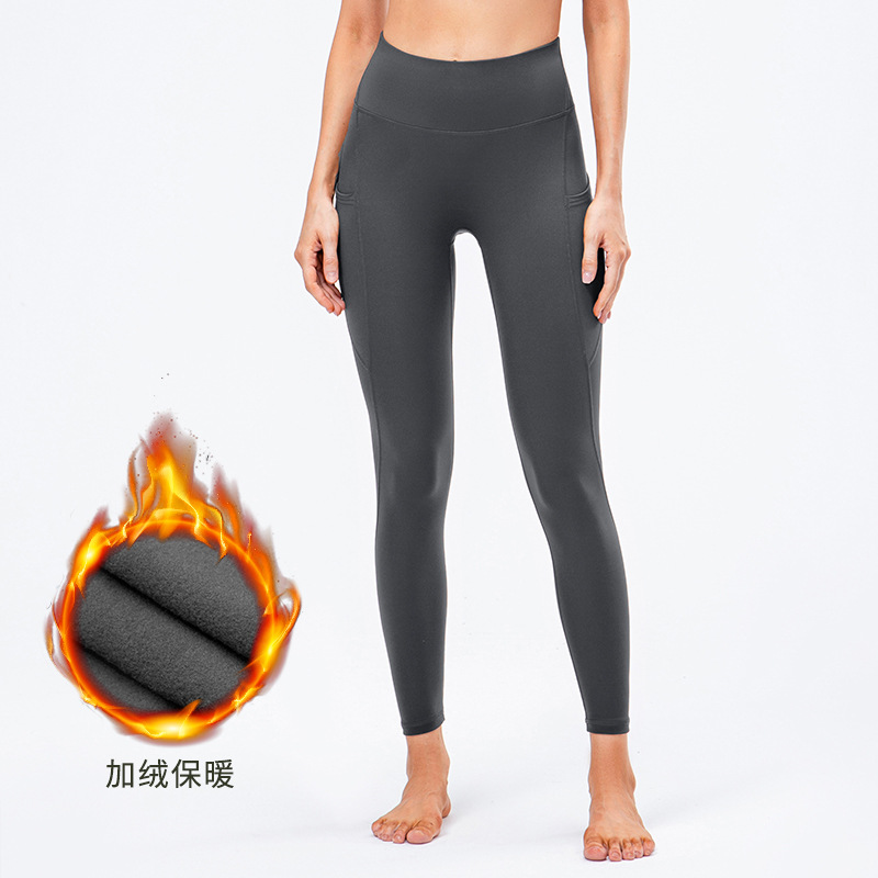 Women's autumn and winter fleece yoga fitness trousers, warm high-waisted tight pocket running training sweatpants