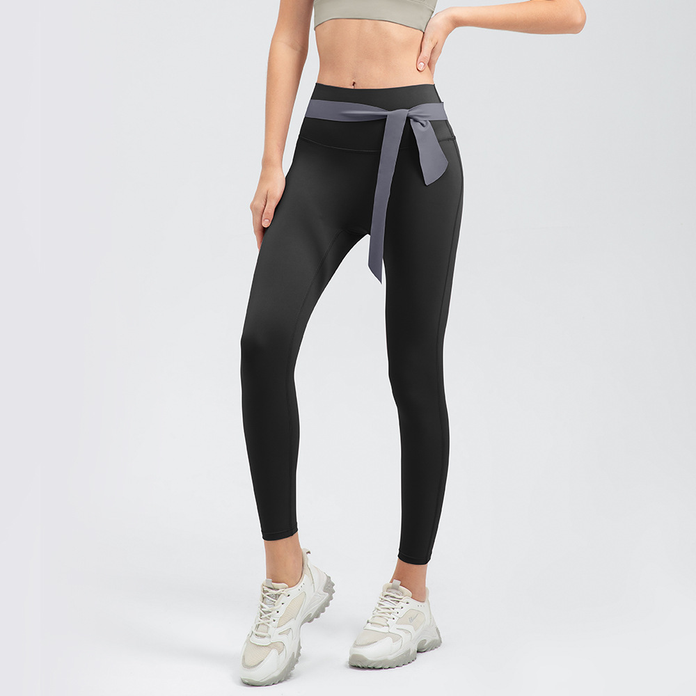 Women's nudity-free yoga pants with contrasting colors, cross-waist sports pants, tight-fitting butt-lifting fitness pants
