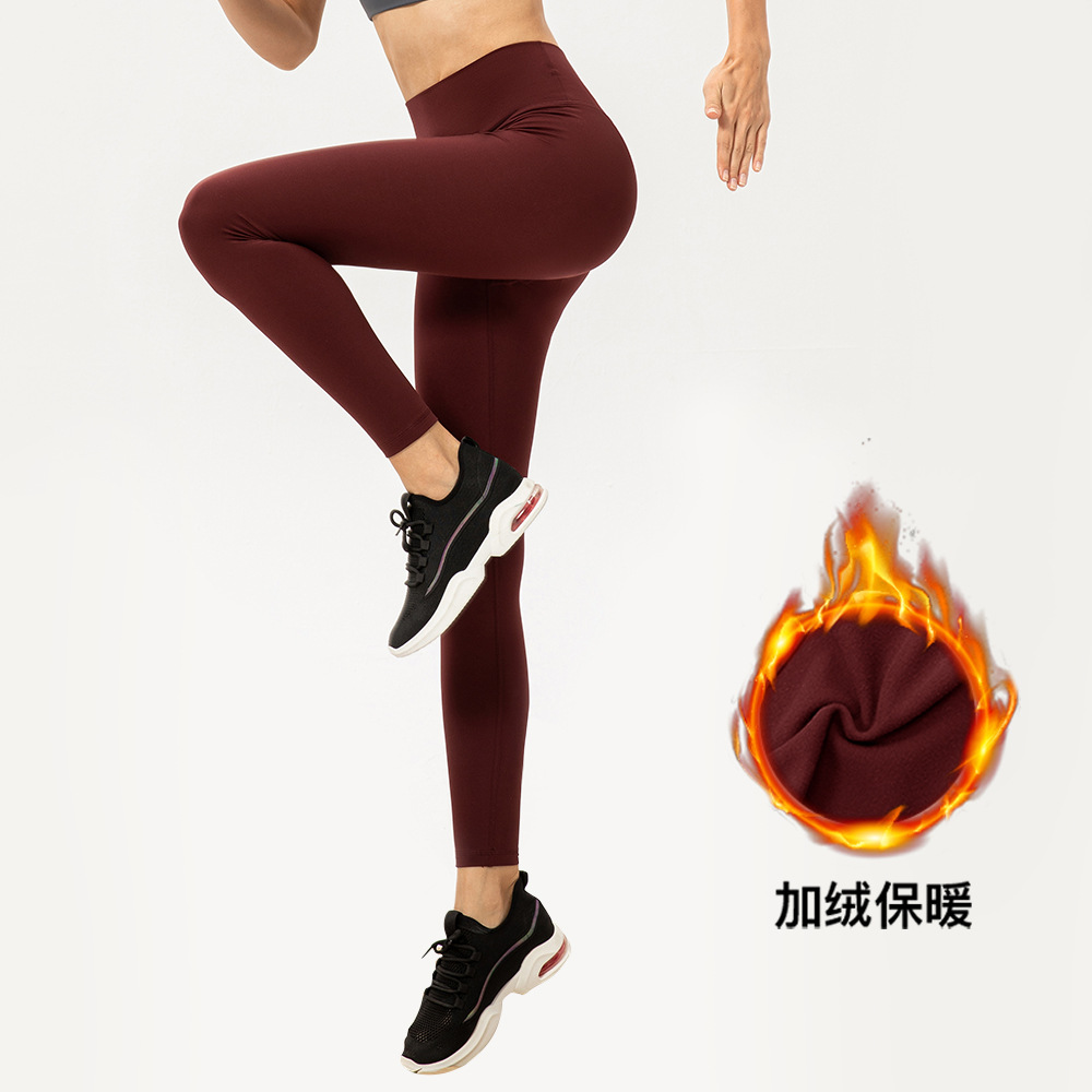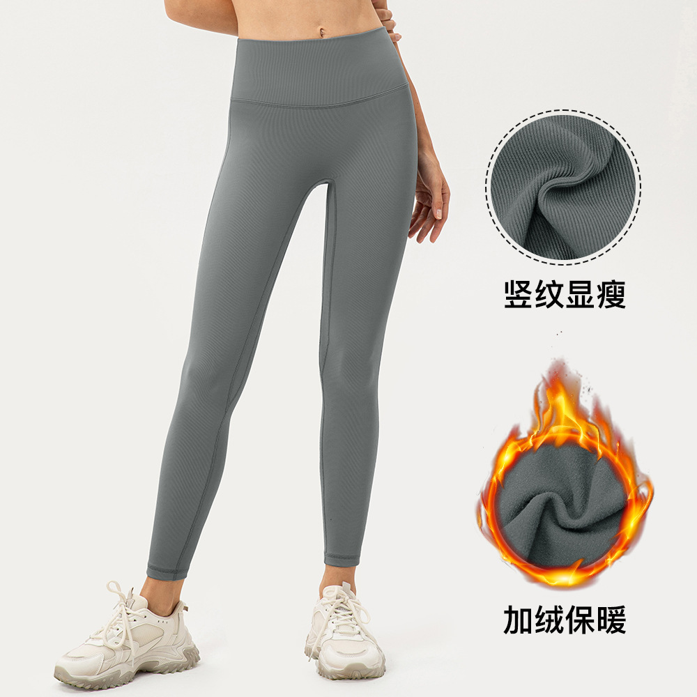 Autumn and winter velvet yoga pants without embarrassing lines for women, striped pit strips, high-elastic tights, running sports trousers