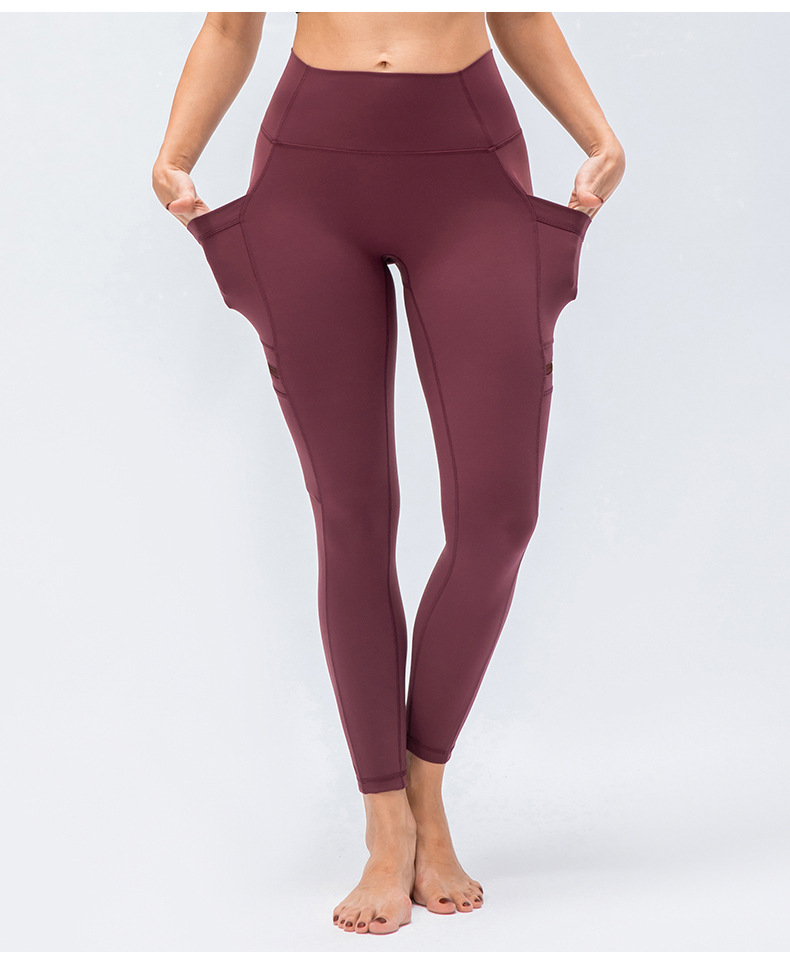 Nude-feeling double-sided skin-friendly yoga cropped pockets, women's elastic tight-fitting butt-lifting fitness running pants