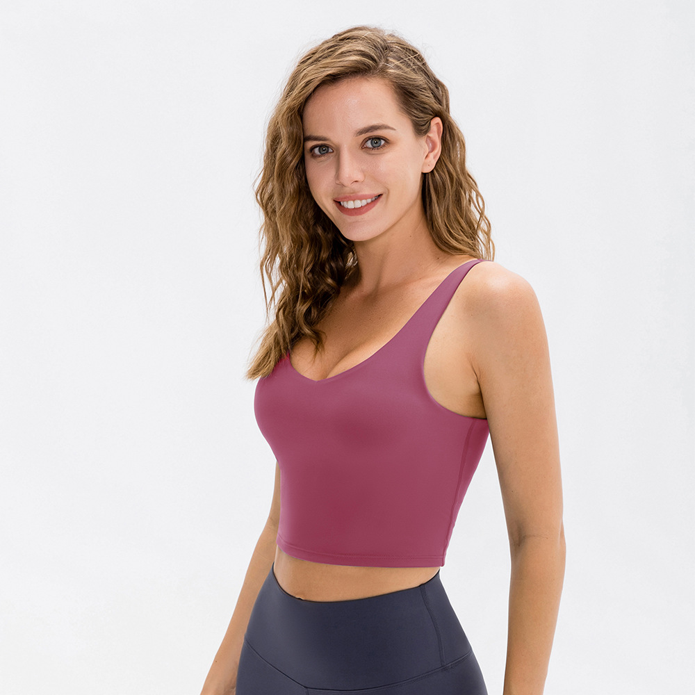 Women's nude yoga vest, tight-fitting high elastic fitness bra, running shockproof sports bra with breast pads